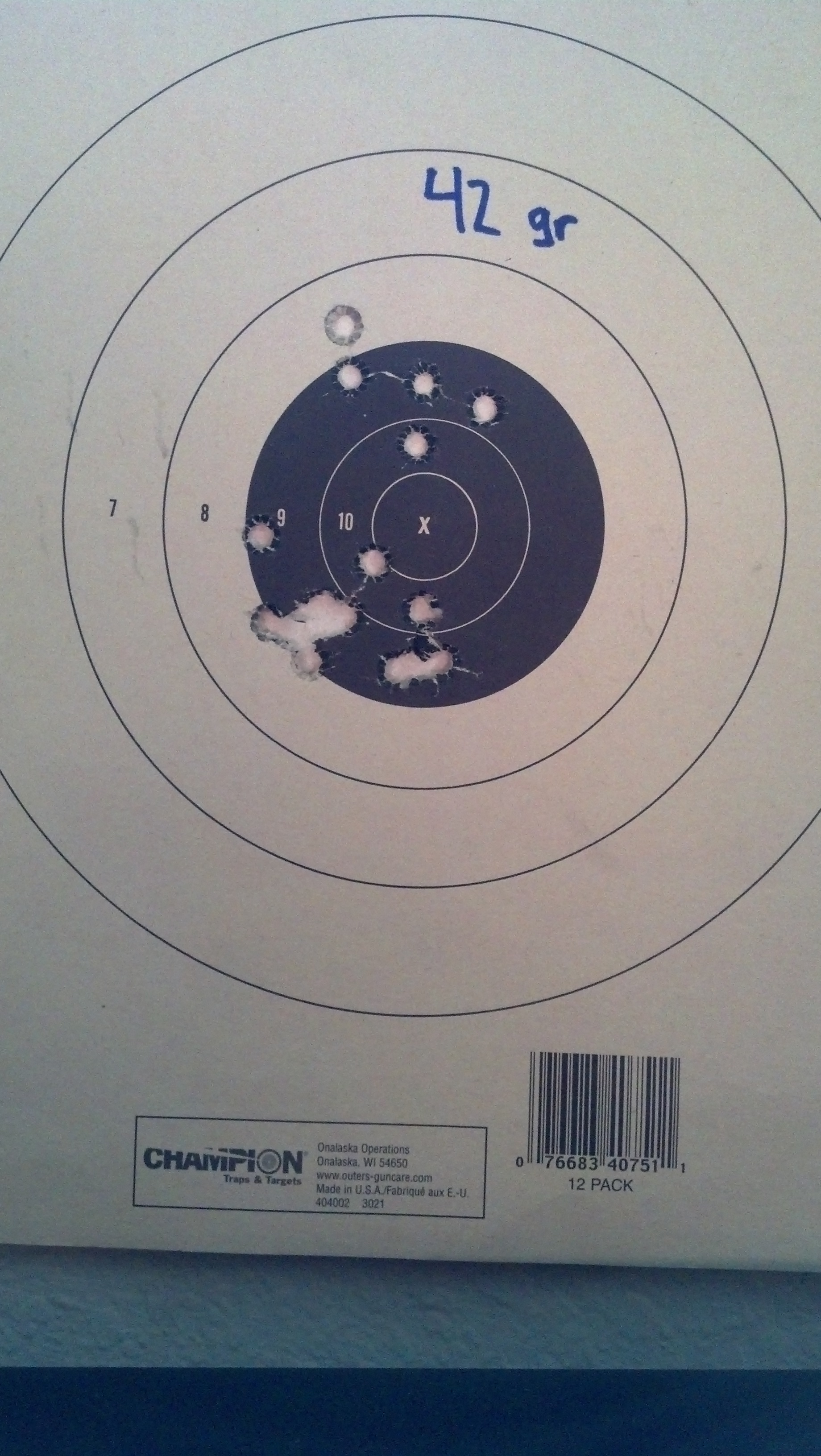 Next up was the 4.2 gr. I had 2 more stovepipes with these so they were just a little light on the powder. Check the target.