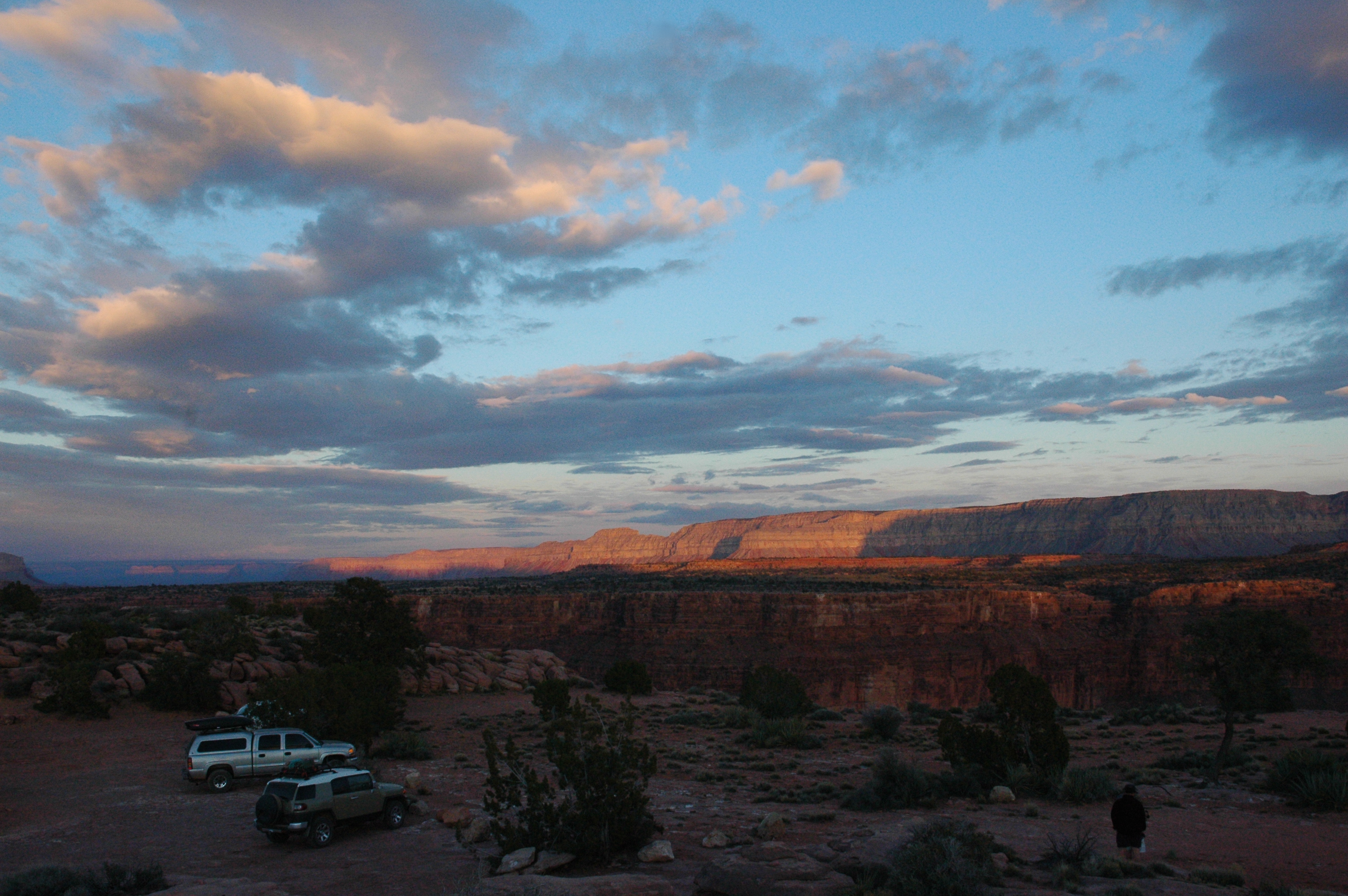 Leaving the Buckskin Tavern, we finally turned off-road, beginning what ended up being 270 miles of dirt roads. The roads were varying quality, but all passable with our vehicles. The goal was to find a camp site, set up camp, and get to the rim so we could watch the sunset over the Grand Canyon.